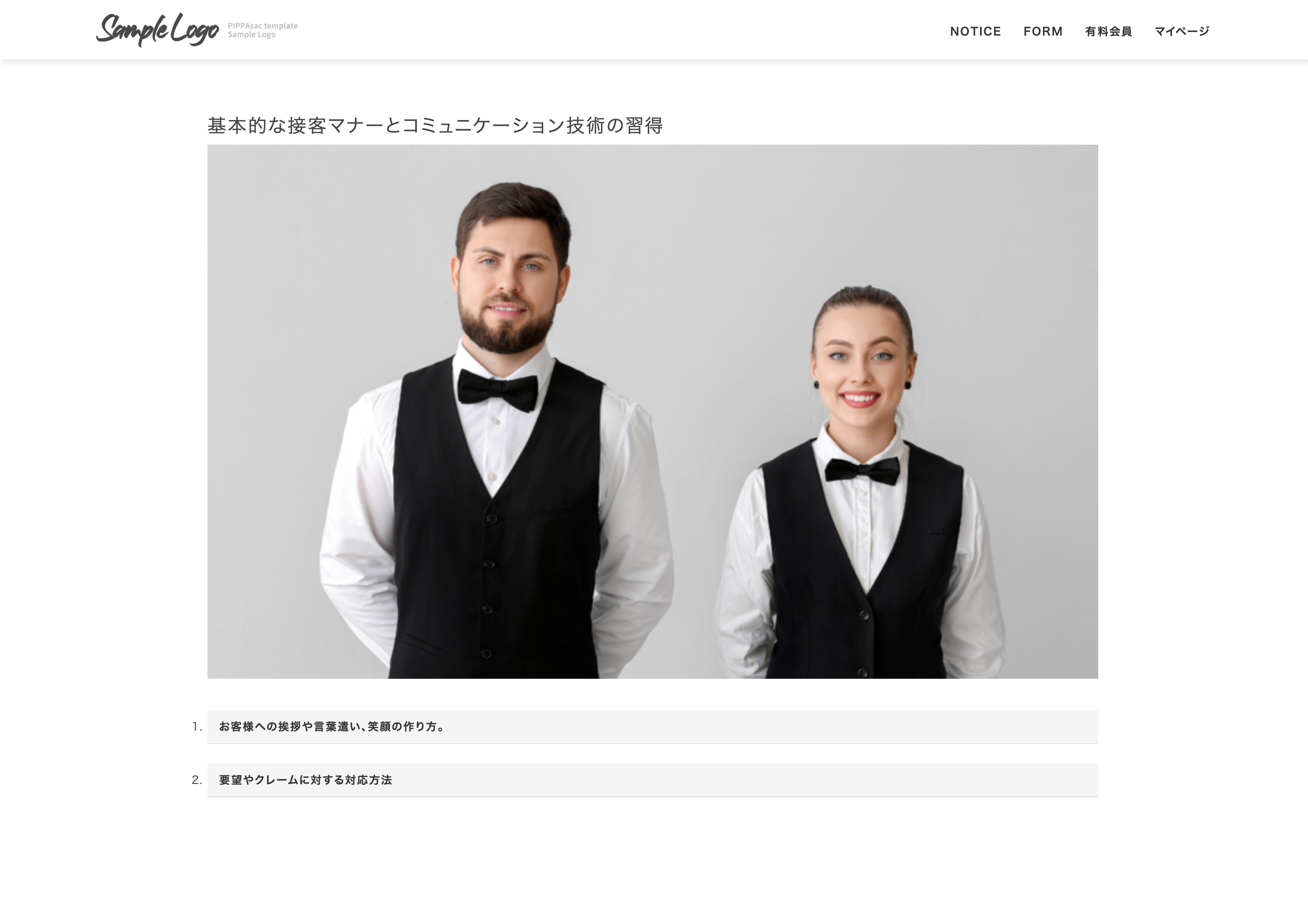 1.お客様への挨拶や言葉遣い、笑顔の作り方 をクリック