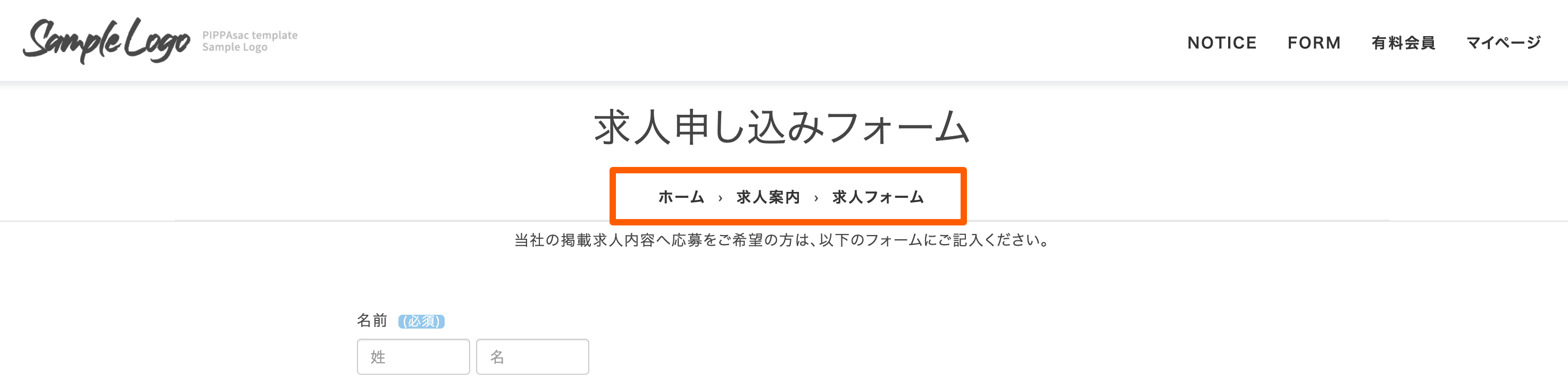 ホームページを訪れたとき、「現在どこのページになのか?」疑問に思った時パンくずリストが道標となります。