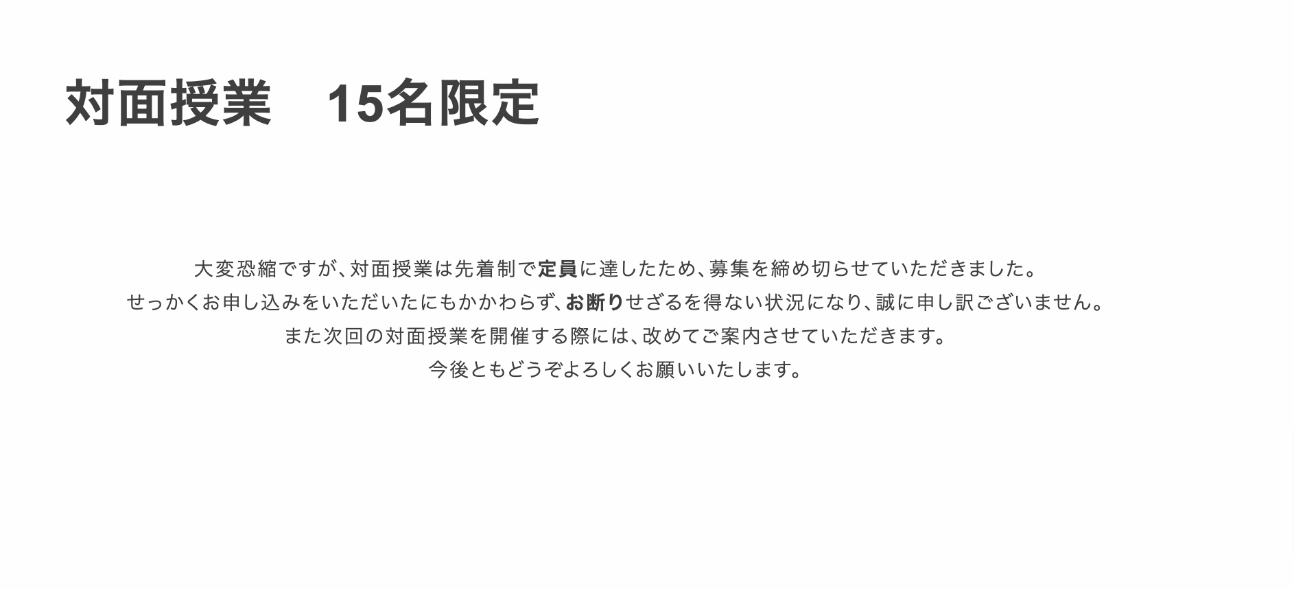 申し込み人数が上限に達した場合は、フォームのとこに【上限に達した際のメッセージ】がユーザーに表示されます。