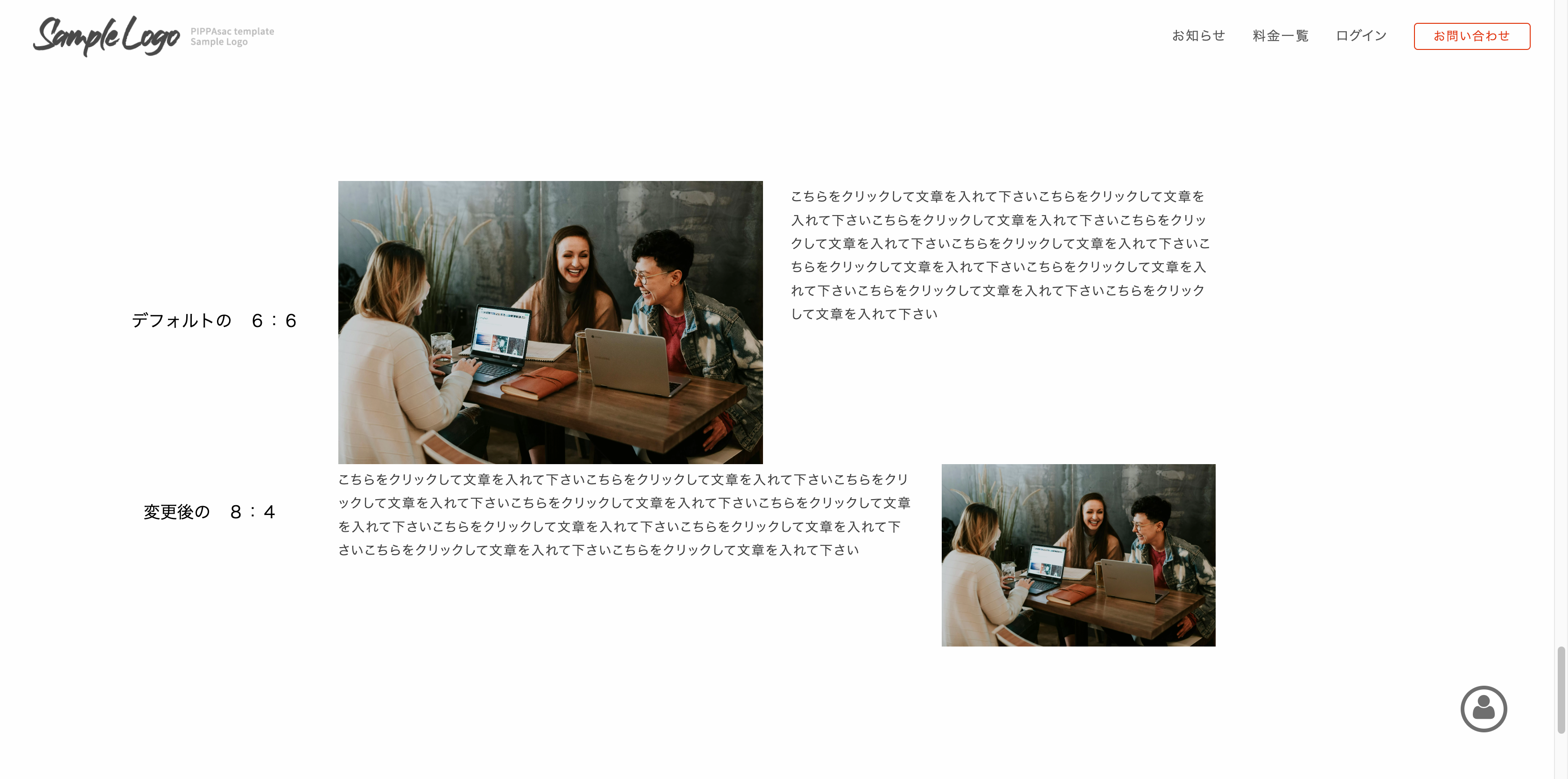 オレンジの枠のところから、カラムの対比を変えることができます。