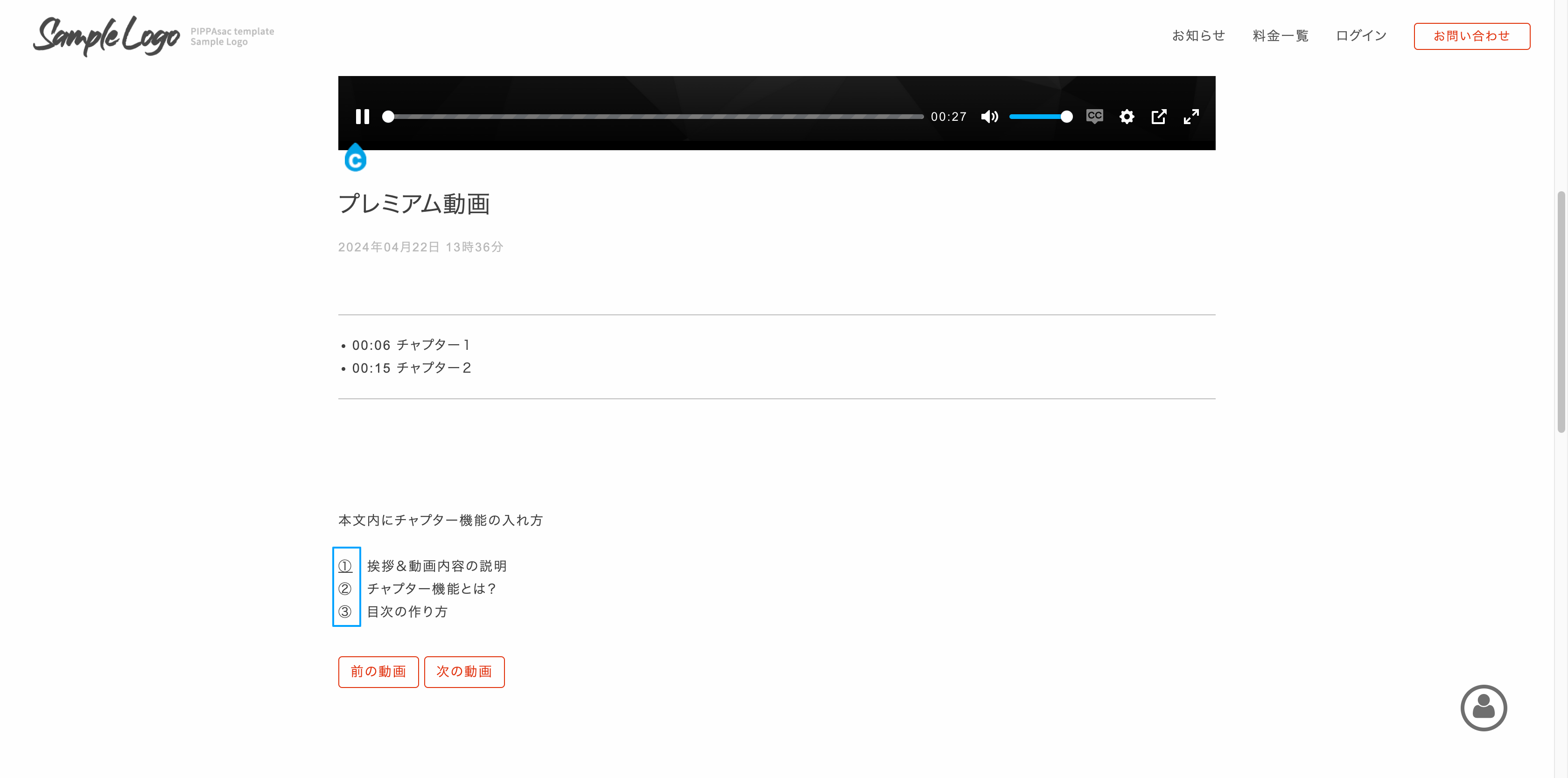 - チャプター機能とは別に記事本文中に動画の開始位置を指定したリンクを設置したいのですができますか?